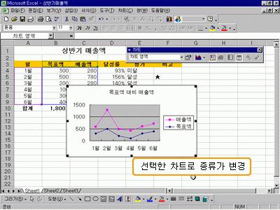 Â÷Æ®¸¦ ÀÛ¼ºÇÑ ÈÄ °£´ÜÇÏ°Ô Â÷Æ®ÀÇ Á¾·ù¸¦ »ç¿ëÀÚ°¡ ¼±ÅÃÇÑ Â÷Æ®·Î º¯°æÇÒ ¼ö ÀÖ½À´Ï´Ù. Â÷Æ®ÀÇ °øÅëµÈ ºÎºÐ Áï ±âº» ÃàÀ̳ª Á¦¸ñ, ±Û²Ã µîÀº Á¾·ù¸¦ º¯°æÇÏ´õ¶óµµ ±×´ë·Î º¯°æµÈ Â÷Æ®¿¡ Àû¿ëµË´Ï´Ù. ÀÛ¼ºµÈ Â÷Æ®¸¦ ¼±ÅÃÇϸé 8°³ÀÇ Á¡(Á¶Àý ÇÚµé)ÀÌ ³ªÅ¸³³´Ï´Ù. Â÷Æ®¸¦ ¼±ÅÃÇÏ¸é ¸Þ´ºÁÙ¿¡ ÀÖ´Â [µ¥ÀÌÅÍ] ¸Þ´º°¡ [Â÷Æ®] ¸Þ´º·Î º¯°æµË´Ï´Ù. ÀÌ Â÷Æ® ¸Þ´º¸¦ ÀÌ¿ëÇϰųª Â÷Æ® µµ±¸ ¸ðÀ½À» ÀÌ¿ëÇÒ ¼ö ÀÖ½À´Ï´Ù.
