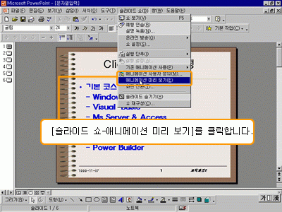 ¼³Á¤ÇÑ ¾Ö´Ï¸ÞÀÌ¼Ç È¿°ú´Â ½½¶óÀÌµå ¼î¸¦ ÁøÇàÇØ¾ß¸¸ ³ªÅ¸³³´Ï´Ù. µû¶ó¼­ ¼³Á¤ÇÑ ¾Ö´Ï¸ÞÀÌ¼Ç È¿°ú¸¦ ¹Ì¸® È®ÀÎÇÏ·Á¸é, [½½¶óÀÌµå ¼î-¾Ö´Ï¸ÞÀÌ¼Ç ¹Ì¸® º¸±â]¸¦ Ŭ¸¯ÇÕ´Ï´Ù.