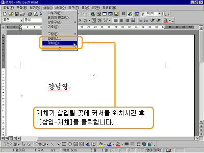 °³Ã¼°¡ »ðÀ﵃ °÷¿¡ Ä¿¼¸¦ À§Ä¡½ÃŲ ÈÄ [»ðÀÔ-°³Ã¼]¸¦